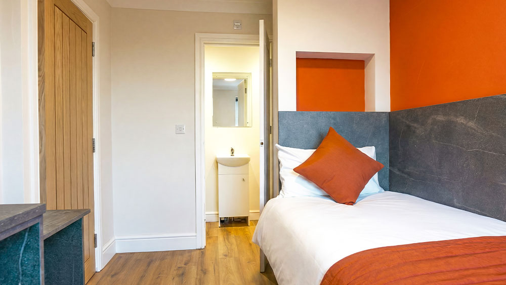 The ideal base for solo professionals or couples. This high-spec room features a plush double bed, ultra-fast WiFi, and a private kitchenette, providing a seamless blend of work-life balance in the heart of Peterborough.