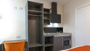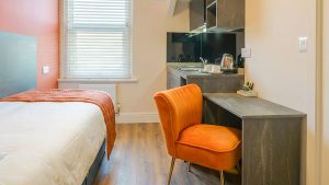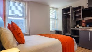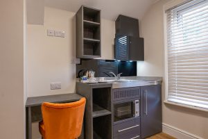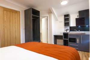 The ideal base for solo professionals or couples. This high-spec room features a plush double bed, ultra-fast WiFi, and a private kitchenette, providing a seamless blend of work-life balance in the heart of Peterborough.